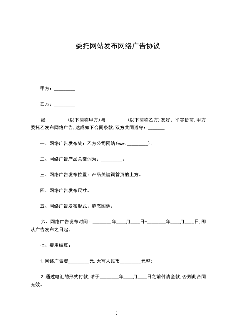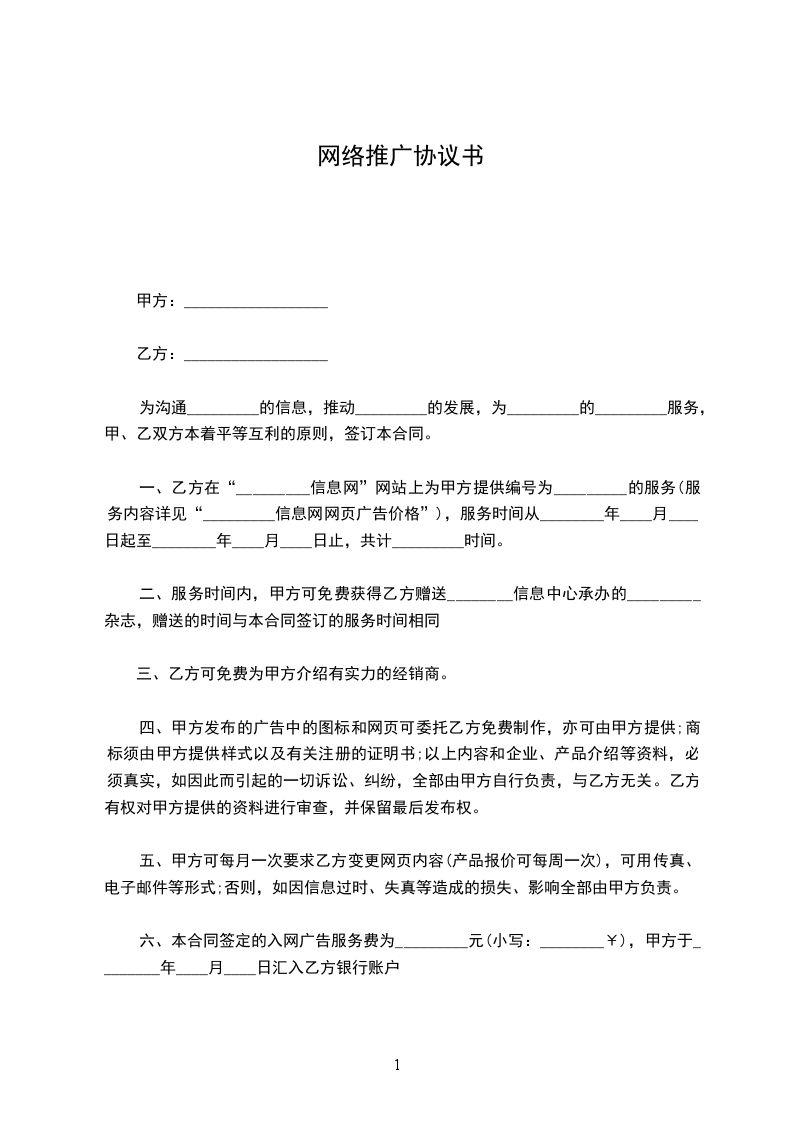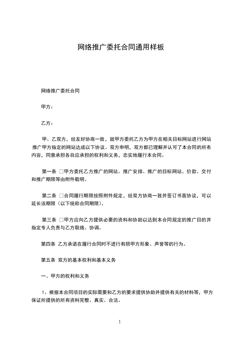 第一条 甲方委托乙方推广的网站、推广安排、推广的目标网站、价款、交付和推广期限等由附件载明。