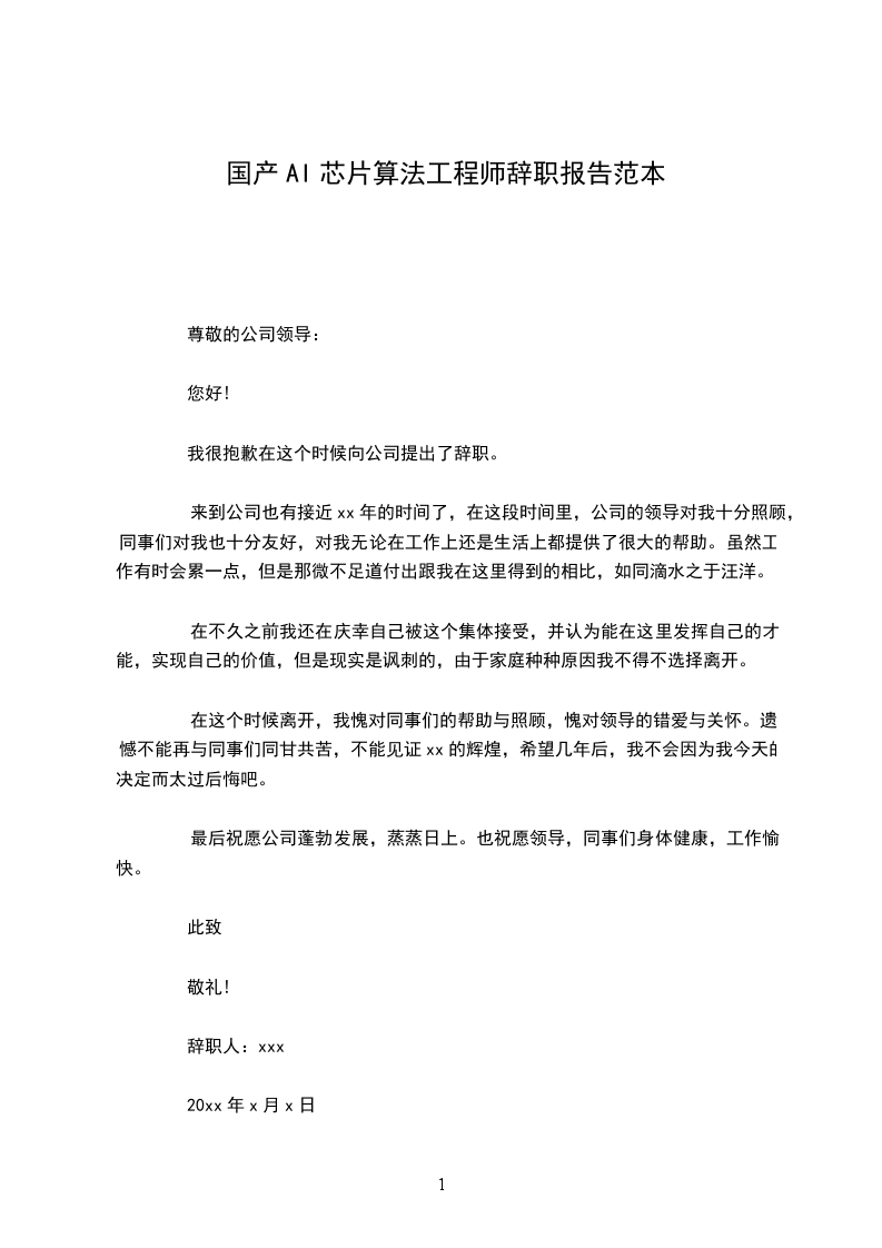 辞职人:xxx