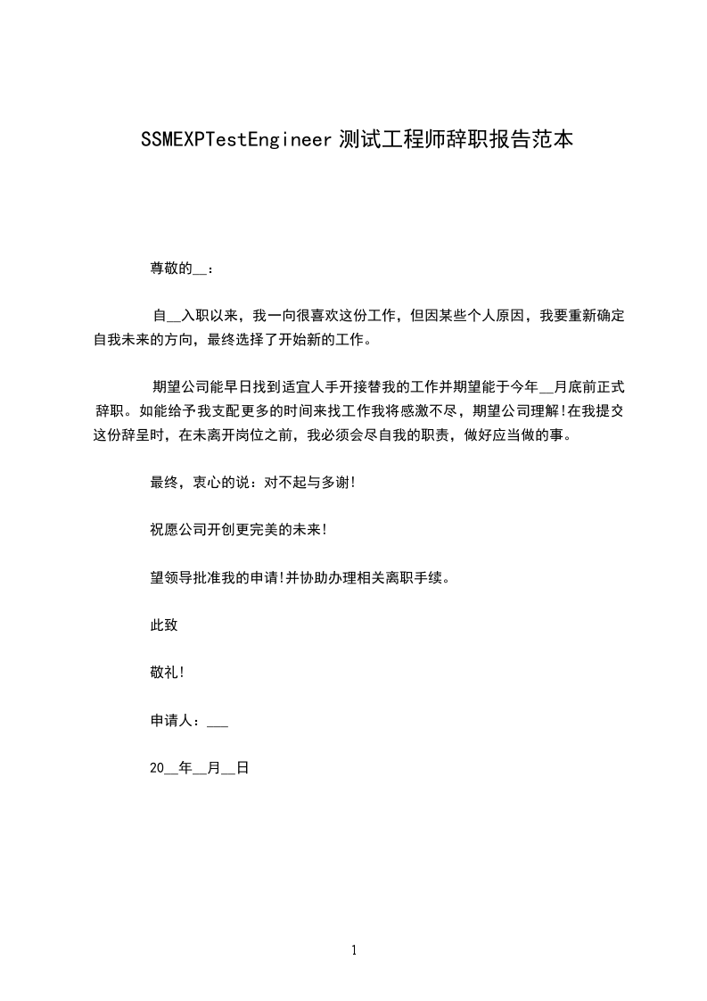 期望公司能早日找到适宜人手开接替我的工作并期望能于今年__月底前正式辞职。如能给予我支配更多的时间来找工作我将感激不尽,期望公司理解!在我提交这份辞呈时,在未离开岗位之前,我必须会尽自我的职责,做好应当做的事。