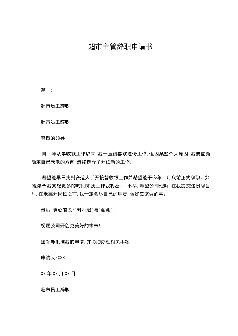辞职人:xxx