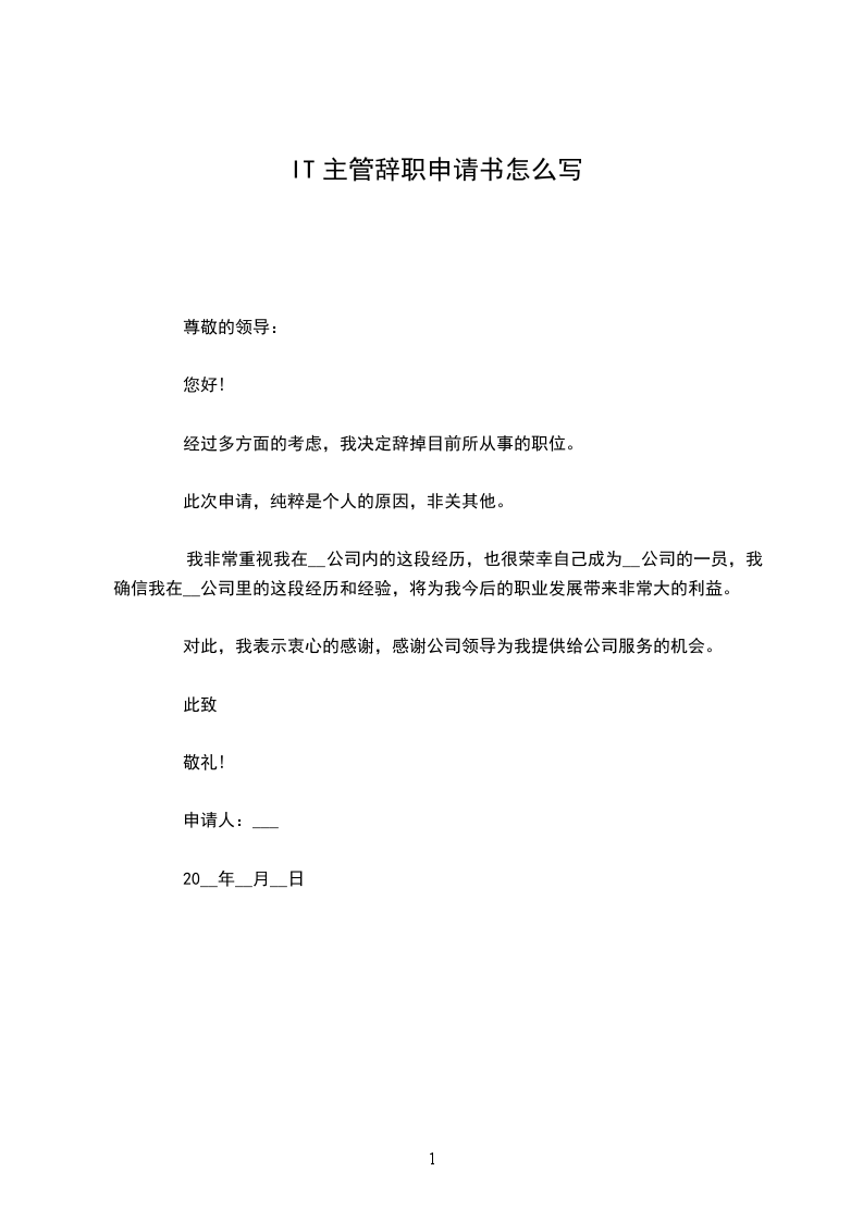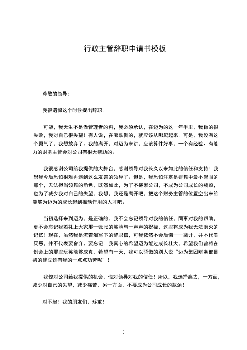 尊敬的公司领导: