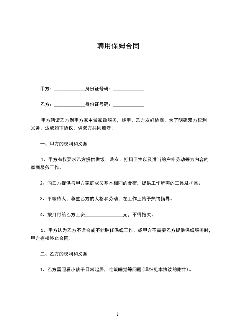 1、乙方需照看小孩子日常起居,吃饭睡觉等问题(详细见本协议的附件)。