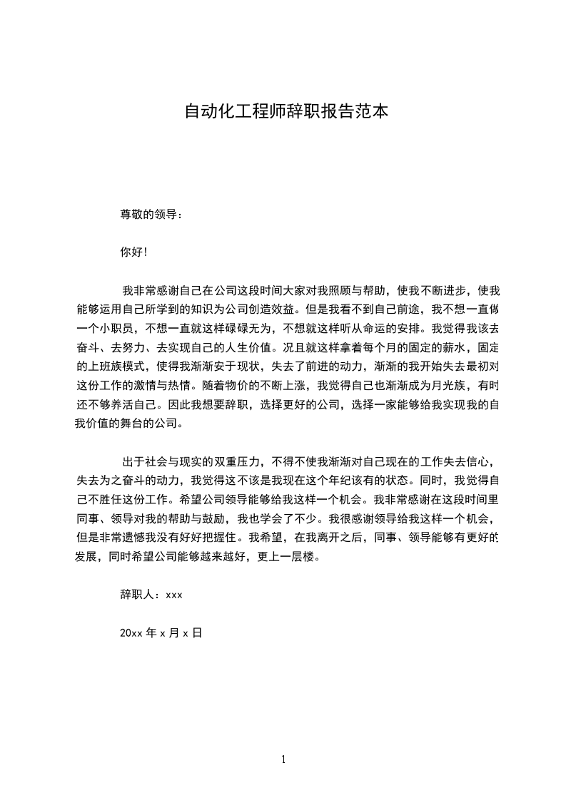 辞职人:xxx