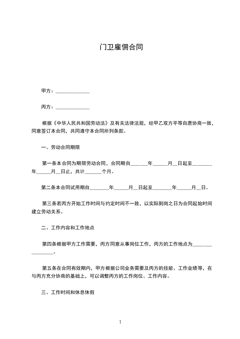 6、此协议一式三份,甲乙双方和乙方门卫各执一份,未尽事宜双方协商可补充协议。