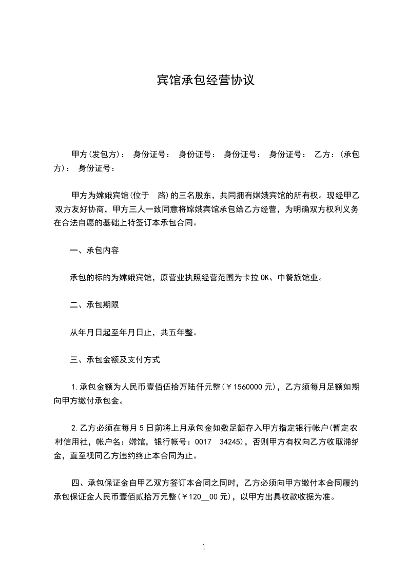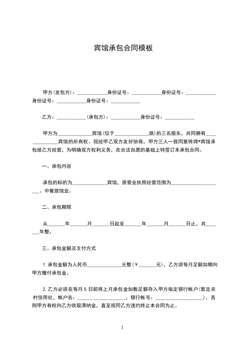 1、乙方自________年________月________日至________年________月________日止;租用甲方酒店共间房间(房间号为________________);