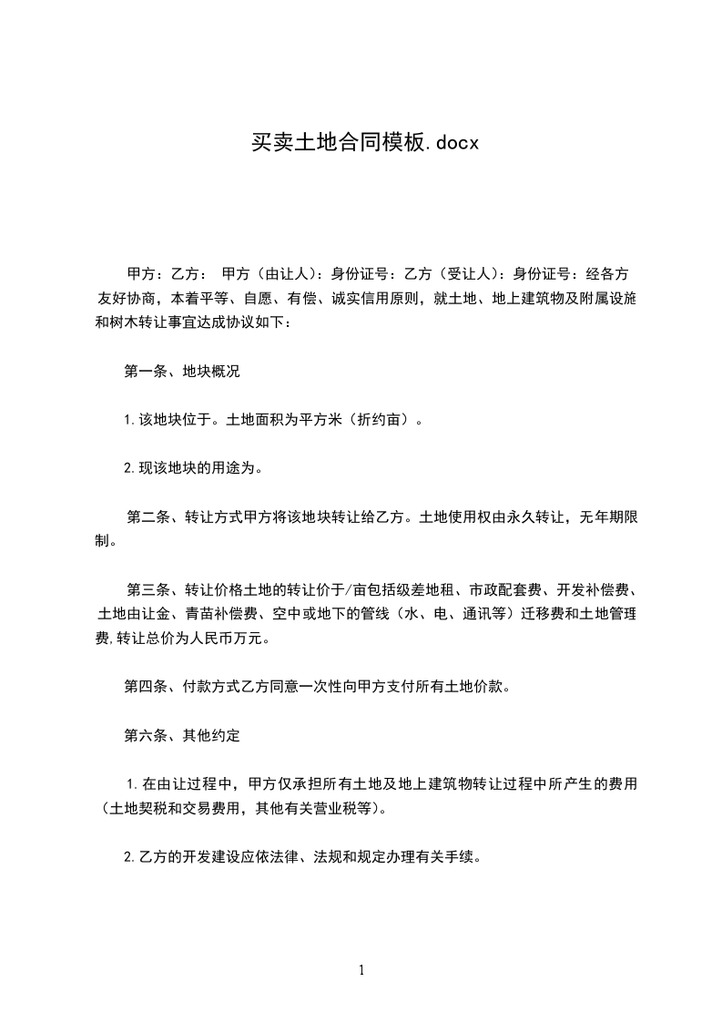 第四条出让土地面积为________________,约每亩,总额为:_________________¥元,大写:_________________人民币。土地费由乙方向甲方(一次或者分期)付清。