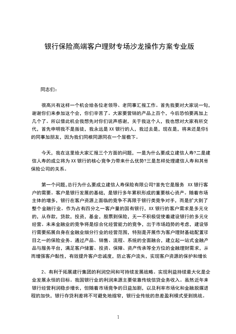 一是在当前各项政策影响下,团险业务拓展环境越来越严峻,展业难度是客观存在的,为此,建议公司能在对团险予以重视,并在外围环境经营上予以支持。二是建议公司领导多参加团险部会议,多与业务员沟通、交流,在业务思路上予以指导与帮助。