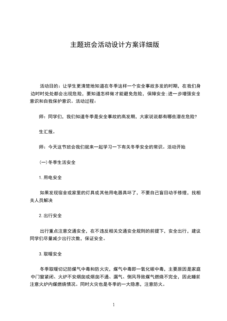 活动目的:让学生更清楚地知道在冬季这样一个安全事故多发的时期,在我们身边时时处处都会出现危险,要知道怎样做才能避免危险,保障安全;进一步增强安全意识和自我保护意识。活动过程: