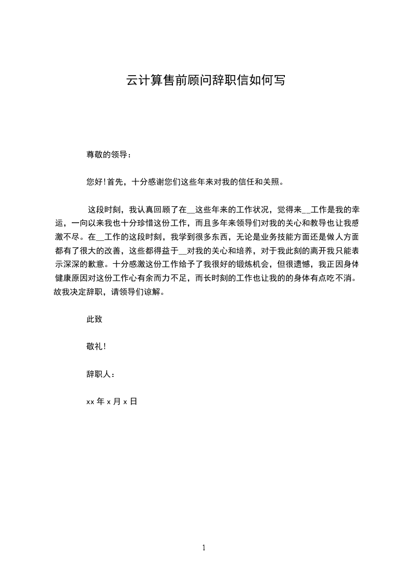云计算讲师辞职报告范本