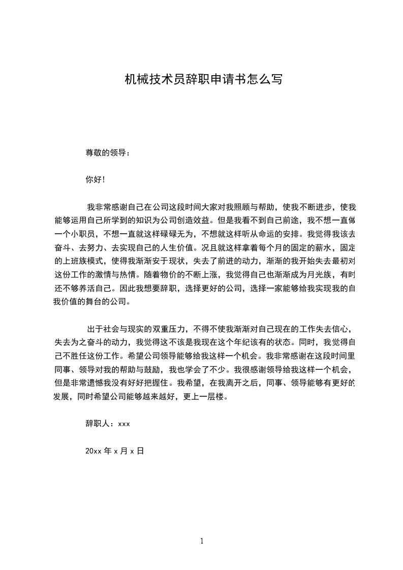 辞职人:xxx