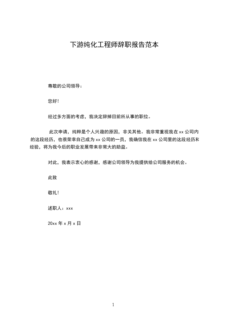 此次申请,纯粹是个人兴趣的原因,非关其他。我非常重视我在xx公司内的这段经历,也很荣幸自己成为xx公司的一员,我确信我在xx公司里的这段经历和经验,将为我今后的职业发展带来非常大的助益。