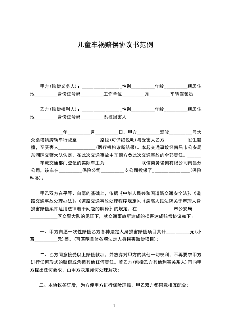 一、甲方自愿一次性赔偿乙方各种法定人身损害赔偿项目共计__________元(小写__________元)整。(可写明具体各项法定人身损害赔偿项目);
