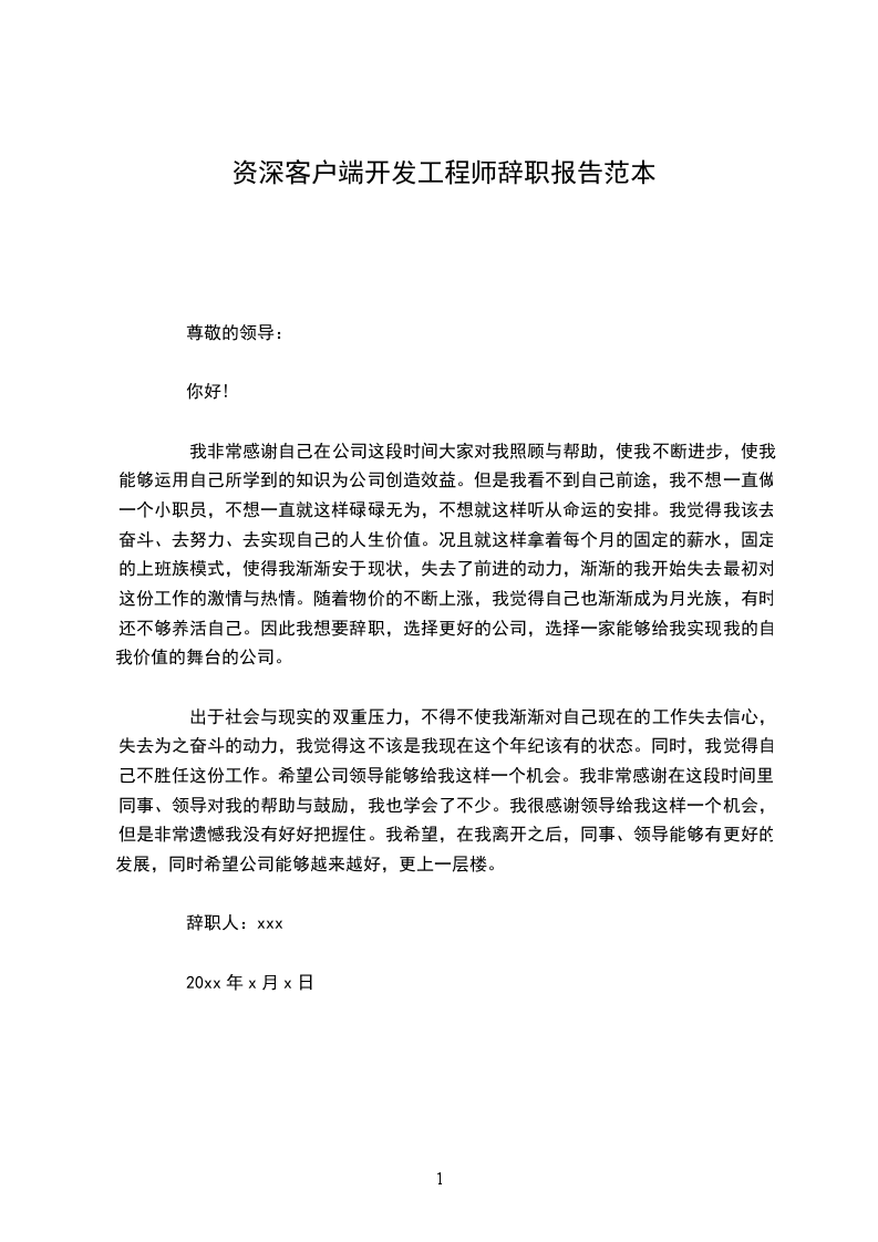 辞职人:xxx
