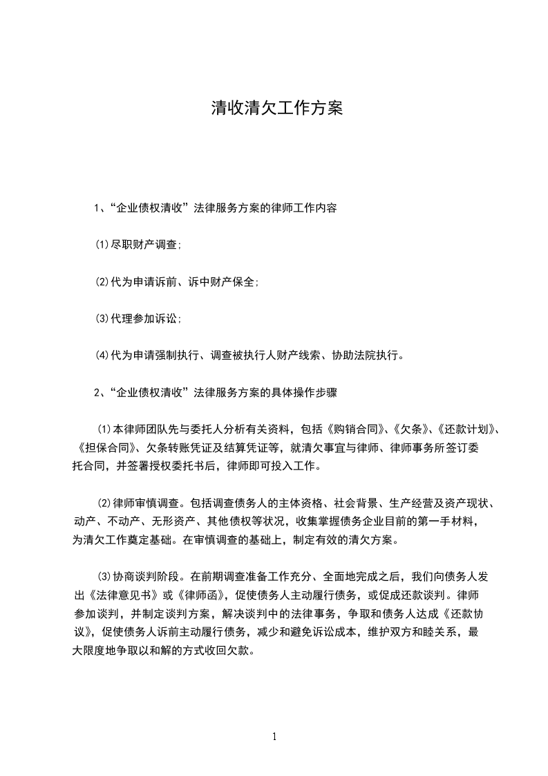 1、企业债权清收法律服务方案的律师工作内容