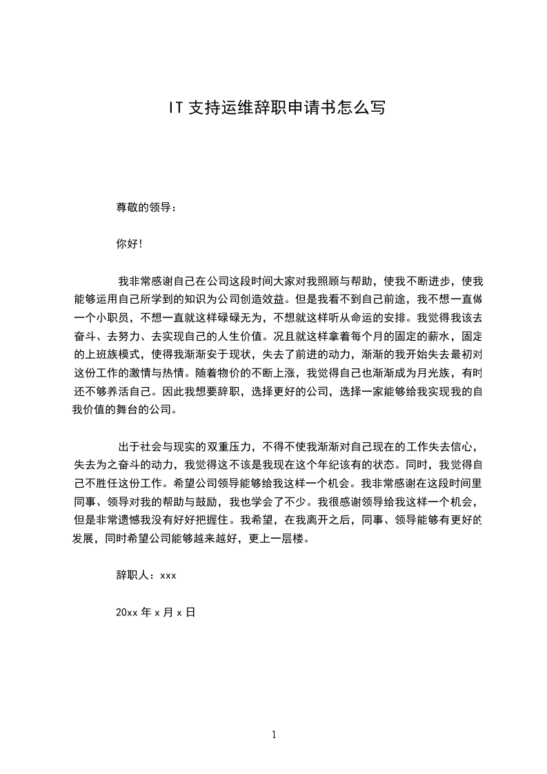 辞职人:xxx