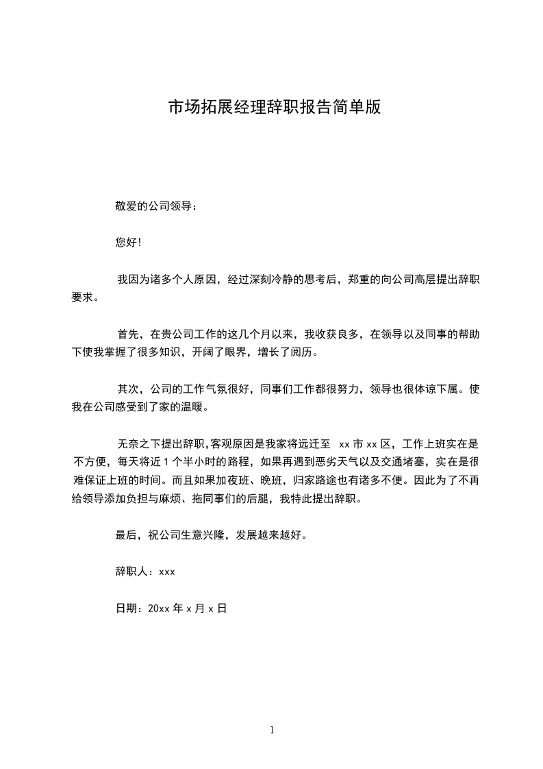 辞职人:xxx
