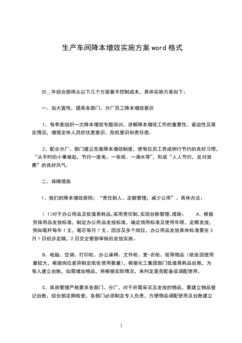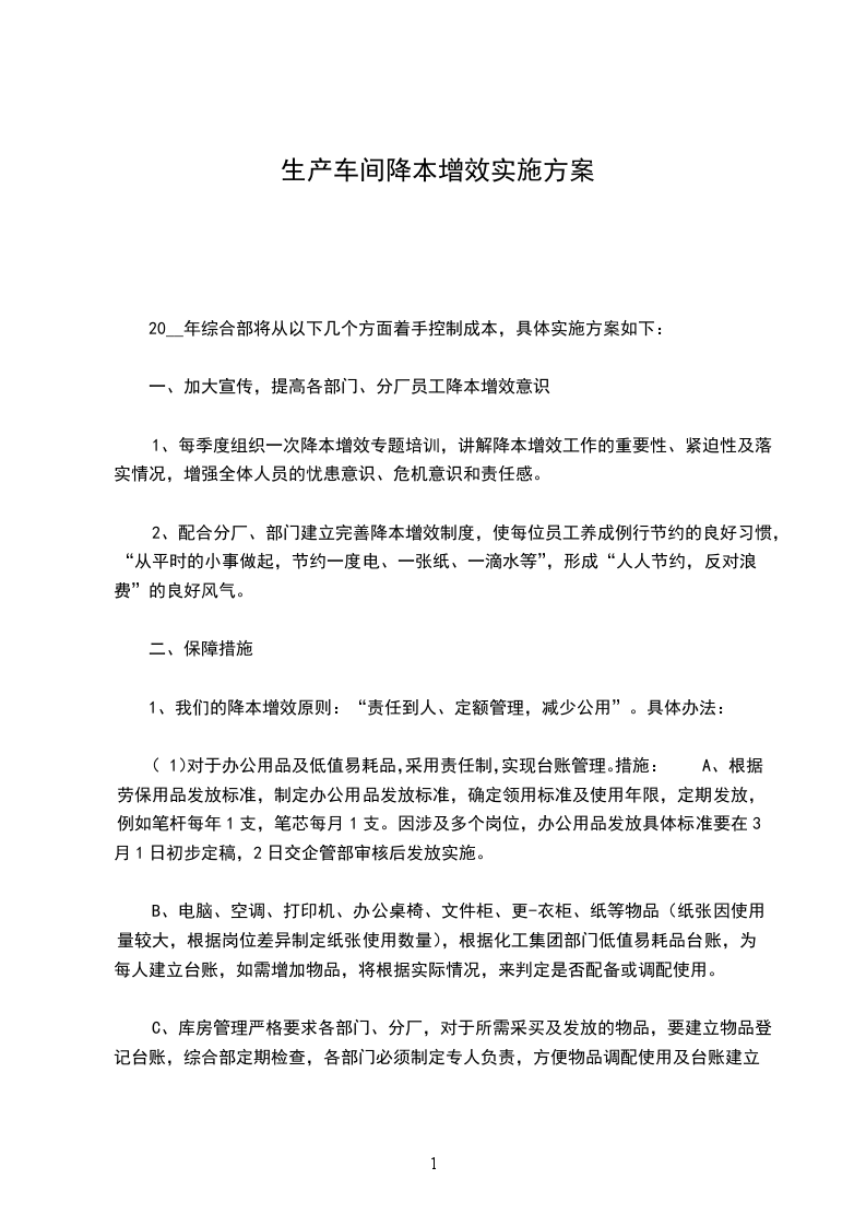 1、我们的降本增效原则:“责任到人、定额管理,减少公用”。具体办法: