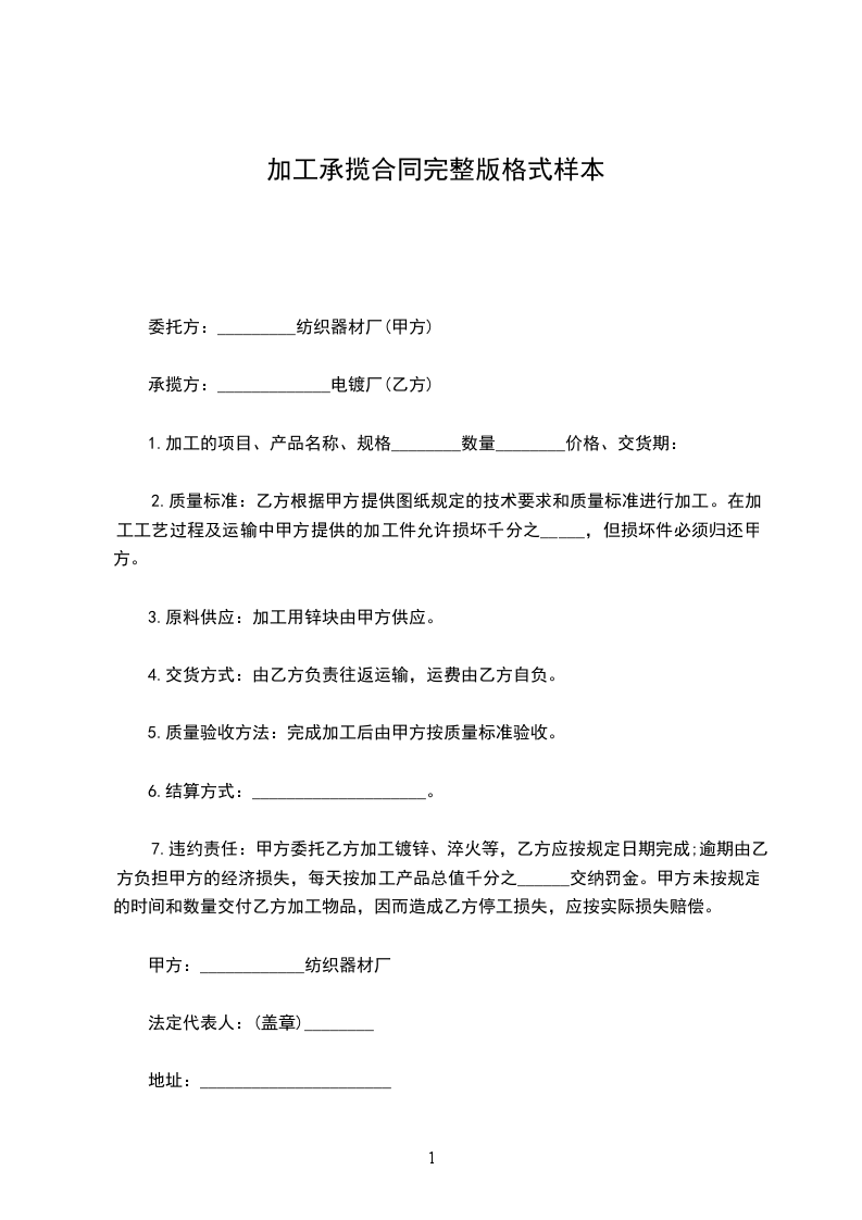 2.质量标准:乙方根据甲方提供图纸规定的技术要求和质量标准进行加工。在加工工艺过程及运输中甲方提供的加工件允许损坏千分之_____,但损坏件必须归还甲方。