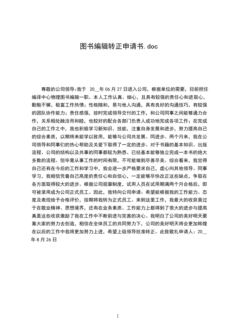 3个多月来的工作:忙碌伴随着充实,汗水伴随着收获。我满怀信心地期待着能继续做好以后的工作,我希望领导能给我一个转正的机会。我深知一名编辑,不仅需要有耐心、细心,还要具有较强的责任心,能够为自己所编辑的报纸负起全部责任,并在工作中不断进取,努力提高自己的业务素质和专业素质,力争使报纸的质量登上一个新的台阶,为报社的发展打开一个更加广阔的渠道。我深信我本人一定能做到这些。我本人性格开朗,工作认真,极善于与他人沟通,注重团队的合作协调,责任感强。更关键的一点是,做一名编辑是我一直以来最大的愿望,我爱好编辑这一行,所以我自信,并能够把所有的精力都投入到工作中去。积极配合各部门负责人,成功地完成各项工作。今后,我会更积极学习新知识,新技能,注重自身发展和进步,努力提高自己的综合素质,努力成为报社所需要的合格人才。虽然3个月时间不算长,但我已经深深被报社良好的企业文化氛围所吸引。报社的领导注重人性化管理,工作环境宽松,在这样的氛围中,可以极大地激发我的自身潜力,使我以更积极的心态投入到每天的工作中。基于以上所述,我申请转正,希望早日得到领导的认同,以便更积极深入地开展工作。