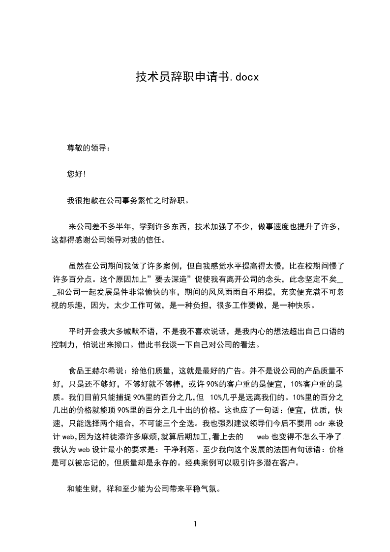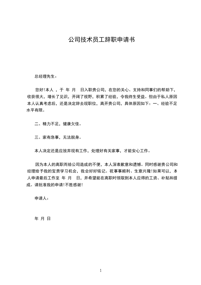 将来无论什么时候, 我都会为自己曾经是公司的一员而感到荣幸。 我确信在公司的这段工作经 历将是我整个职业生涯发展中相当重要的一部分。祝公司领导和所有同事身体健康、工作顺利! 再次对我的离职给公司带来的不便表示抱歉,同时我也希望公司能够体恤我的个人实 际,对我的申请予以考虑并批准。