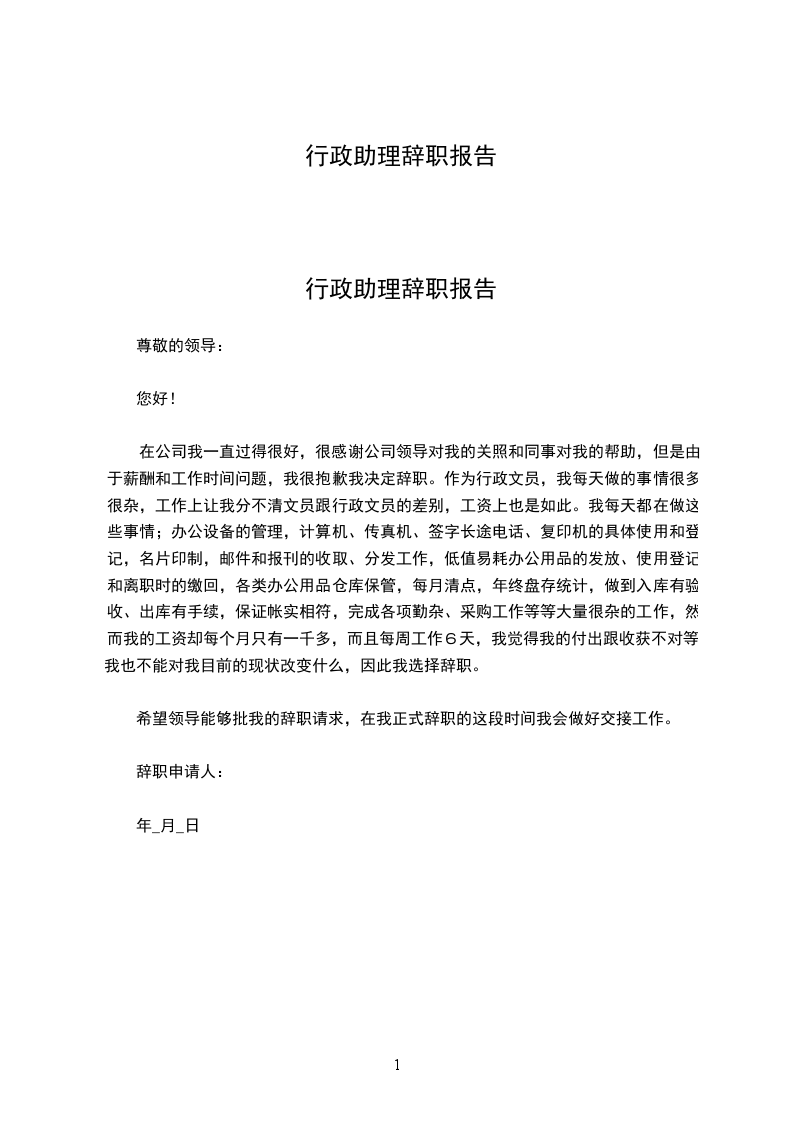 我希望在我提交这份辞程的时候,在未离开岗位之前,是我的工作,请领导尽管分配,我一定会尽自己的职责,做好应该做的事。另外,希望领导不要挽留我,其实,离开是很舍不得,原因自不用说明。但是既已决定,挽留会让我最终离开的时候更为难。交接工作可能需要一个时期,我希望在这个月内完成工作交接,我希望领导理解。谢谢!最后,希望公司的业绩一如既往一路飙升!各位同仁工作顺利!