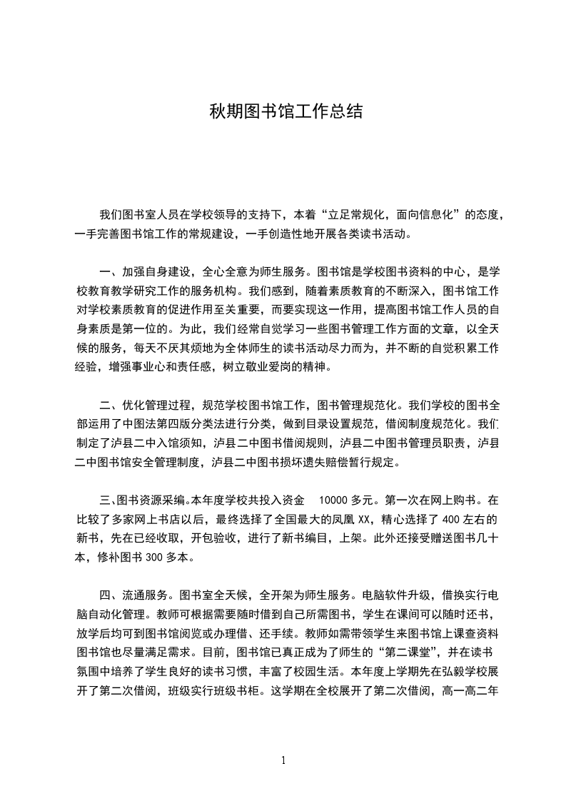 二、优化管理过程,规范学校图书馆工作,图书管理规范化。我们学校的图书全部运用了中图法第四版分类法进行分类,做到目录设置规范,借阅制度规范化。我们制定了泸县二中入馆须知,泸县二中图书借阅规则,泸县二中图书管理员职责,泸县二中图书馆安全管理制度,泸县二中图书损坏遗失赔偿暂行规定。