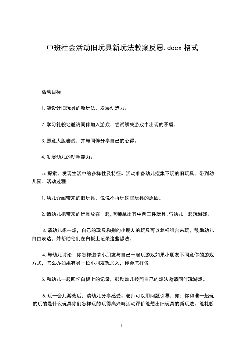 1.能设计旧玩具的新玩法,发展创造力。