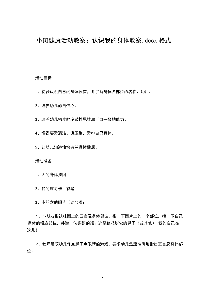 1、初步认识自己的身体器官,并了解身体各部位的名称、功用。