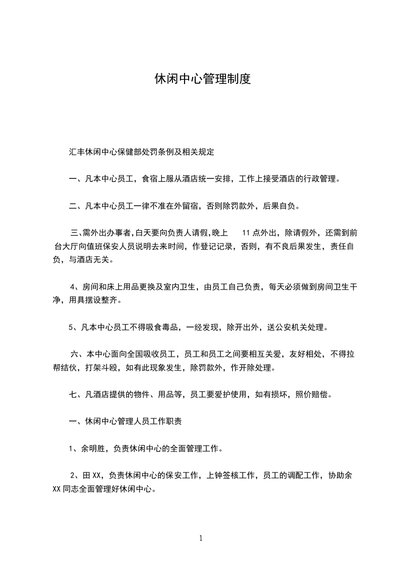 2、田XX,负责休闲中心的保安工作,上钟签核工作,员工的调配工作,协助余XX同志全面管理好休闲中心。