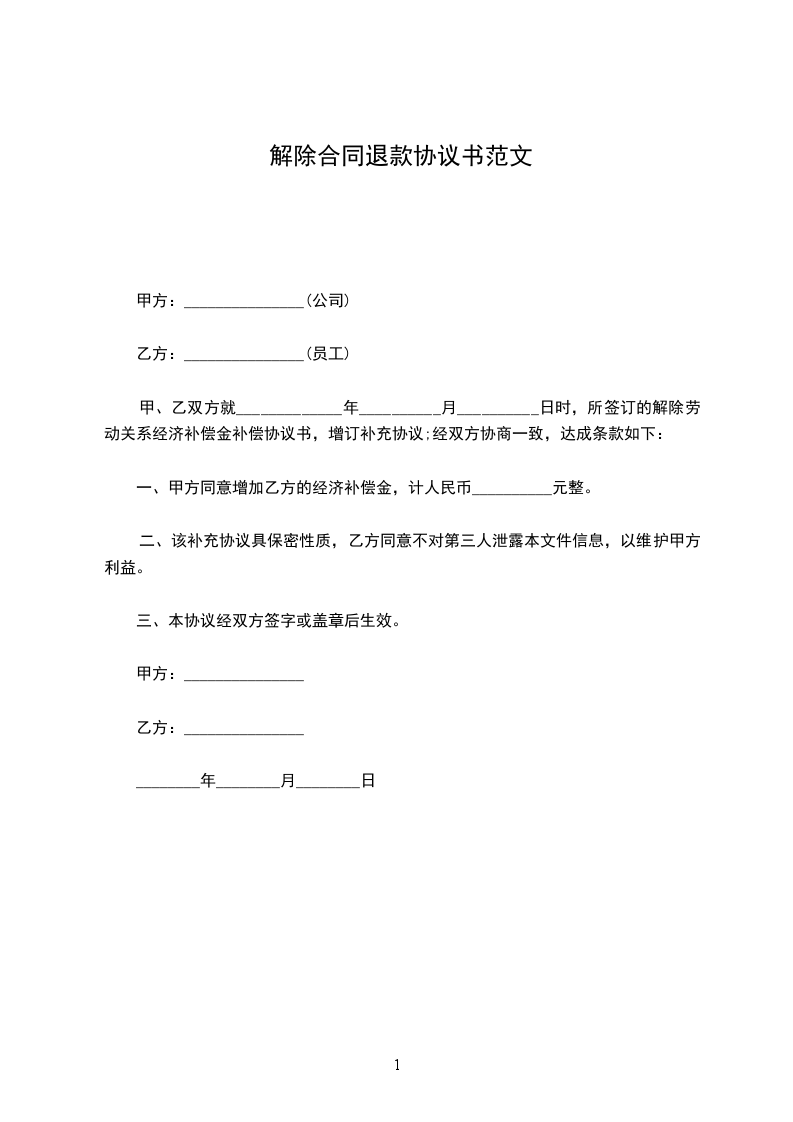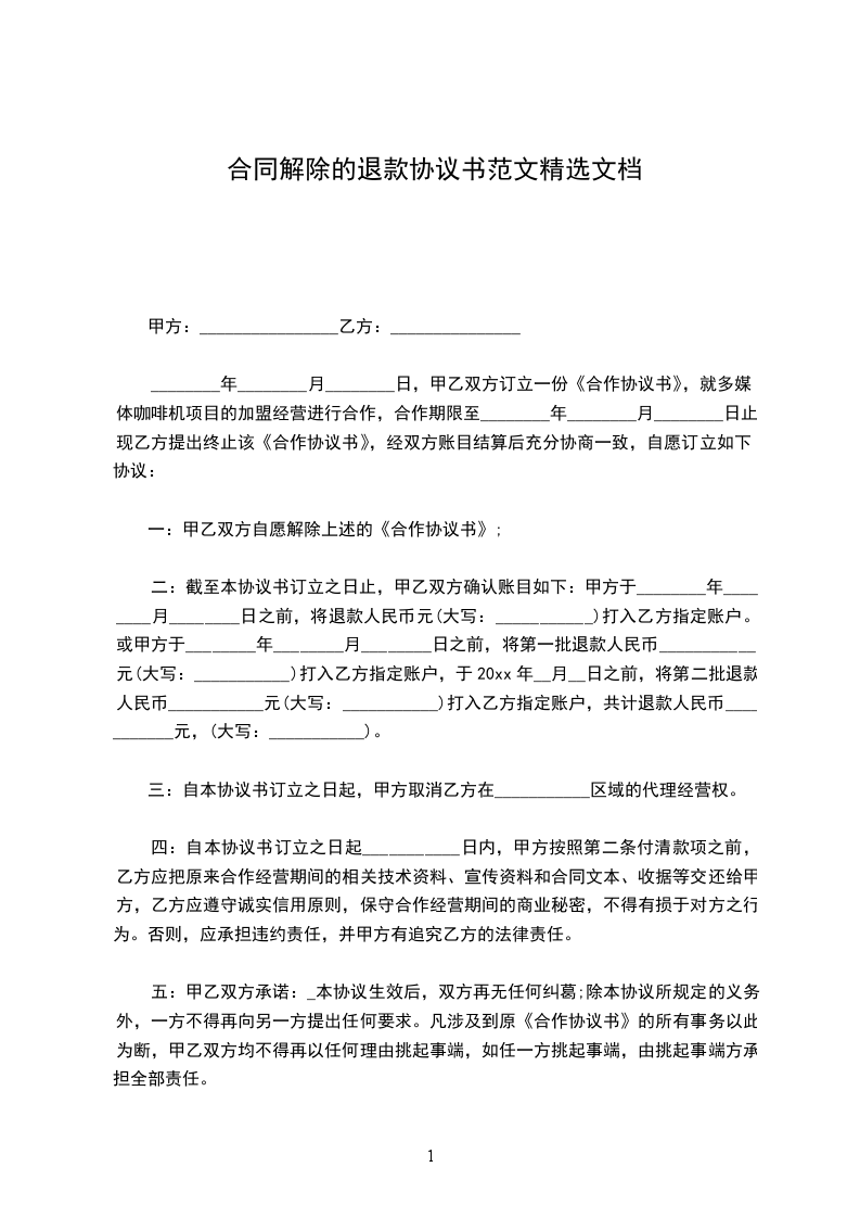 二:截至本协议书订立之日止,甲乙双方确认账目如下:甲方于________年________月________日之前,将退款人民币_____元(大写:___________)打入乙方指定账户。或甲方于________年________月________日之前,将第一批退款人民币___________元(大写:___________)打入乙方指定账户,于_____年_____月_____日之前,将第二批退款人民币___________元(大写:___________)打入乙方指定账户,共计退款人民币___________元,(大写:___________)。