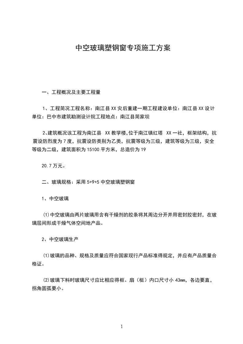 一、安全目标:杜绝一切安全、火灾等事故发生,确保玻璃窗安装工作顺利完成。