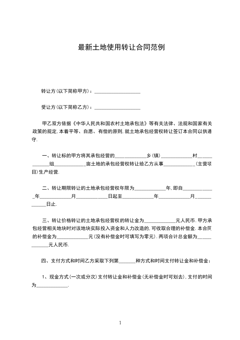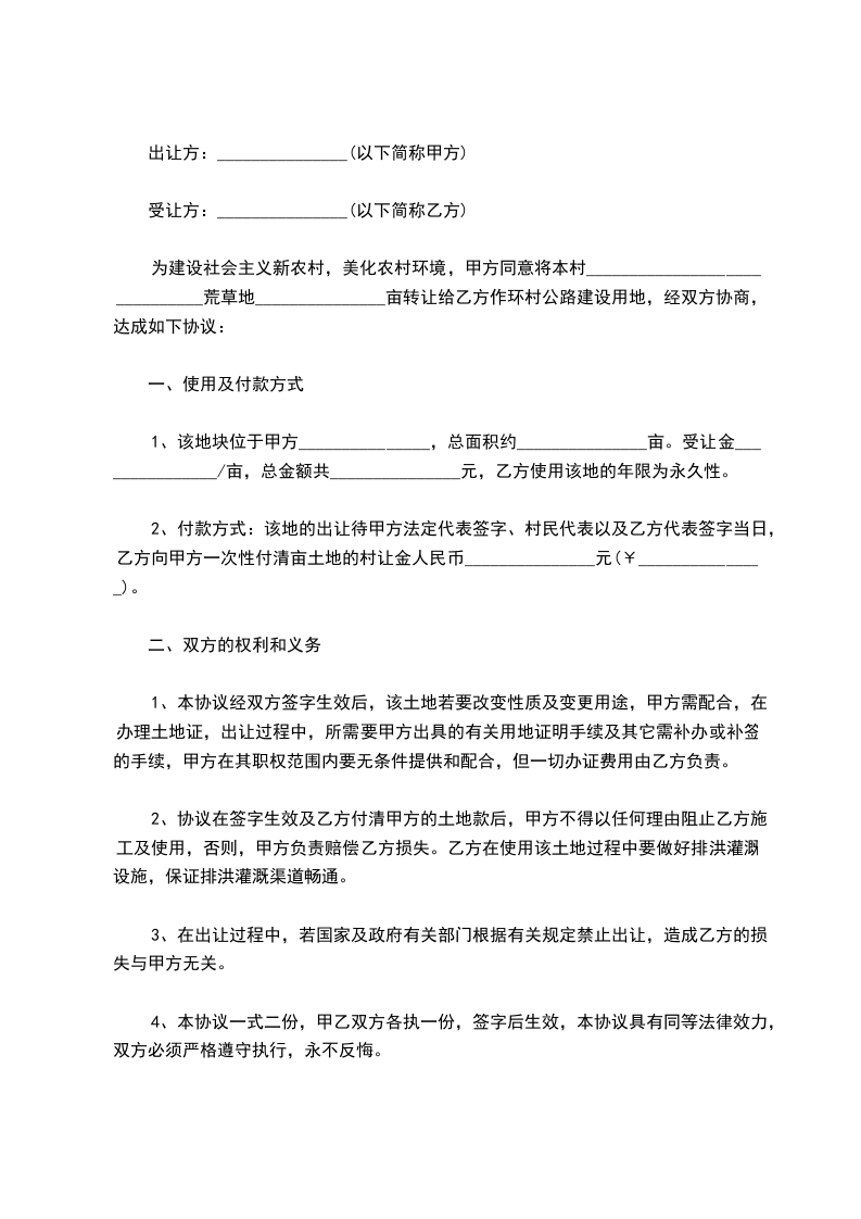 三、转让价格转让的土地承包经营权的转让金为_____________元人民币.甲方承包经营相关地块时对该地块实际投入资金和人力改造的,可收取合理的补偿金.本合同的补偿金为_____________元(没有补偿金时可填写为零元).两项合计总金额为_____________元人民币.