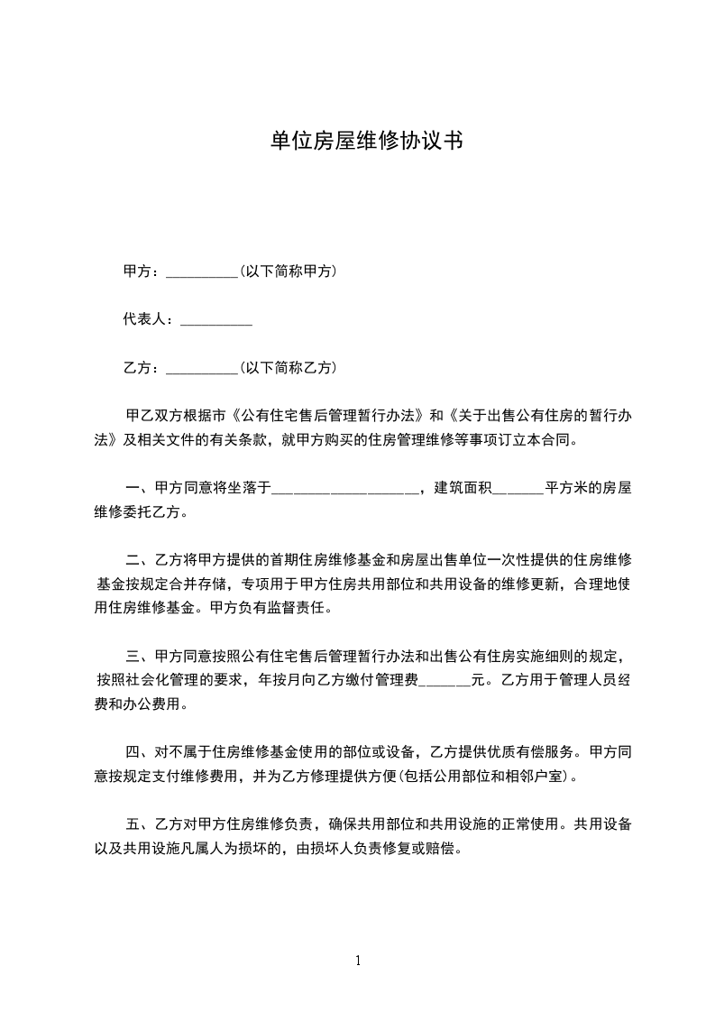 甲方:_(以下简称甲方)代表人:_乙方:_(以下简称乙方)甲乙双方依据市公有住宅售后管理暂行办法和关于出售公有住房的暂行办法及相关文件的有关条款,就甲方购买的住房管理修理等事项订立本合同。