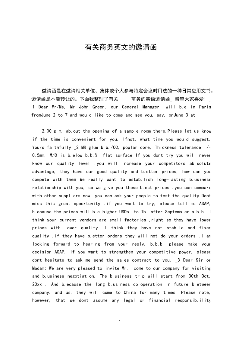 英文商务邀请函