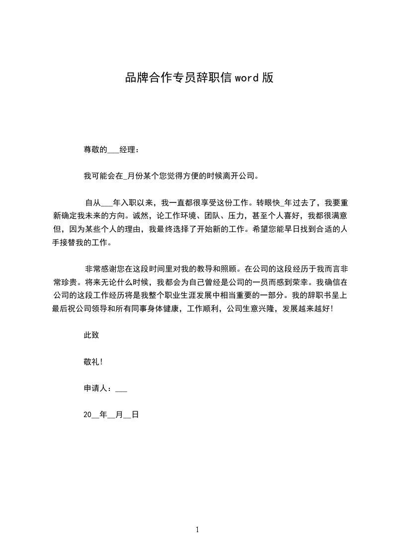 自从___年入职以来,我一直都很享受这份工作。转眼快_年过去了,我要重新确定我未来的方向。诚然,论工作环境、团队、压力,甚至个人喜好,我都很满意。但,因为某些个人的理由,我最终选择了开始新的工作。希望您能早日找到合适的人手接替我的工作。