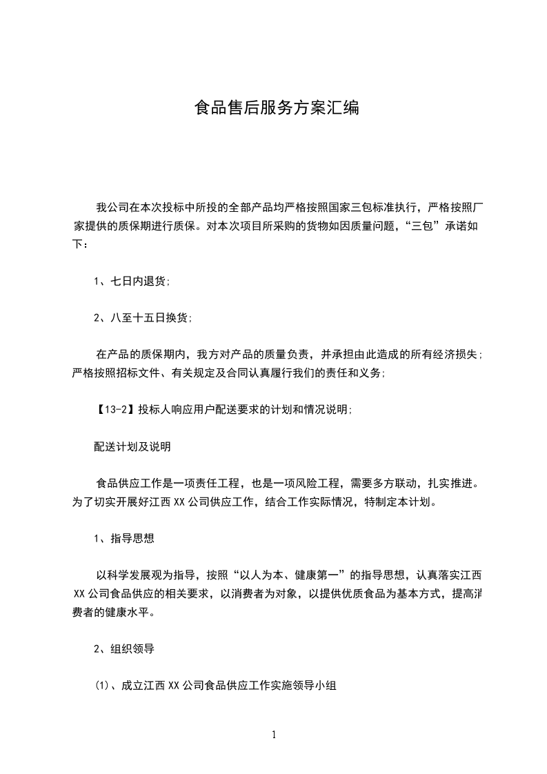 (1)、成立江西XX公司食品供应工作实施领导小组