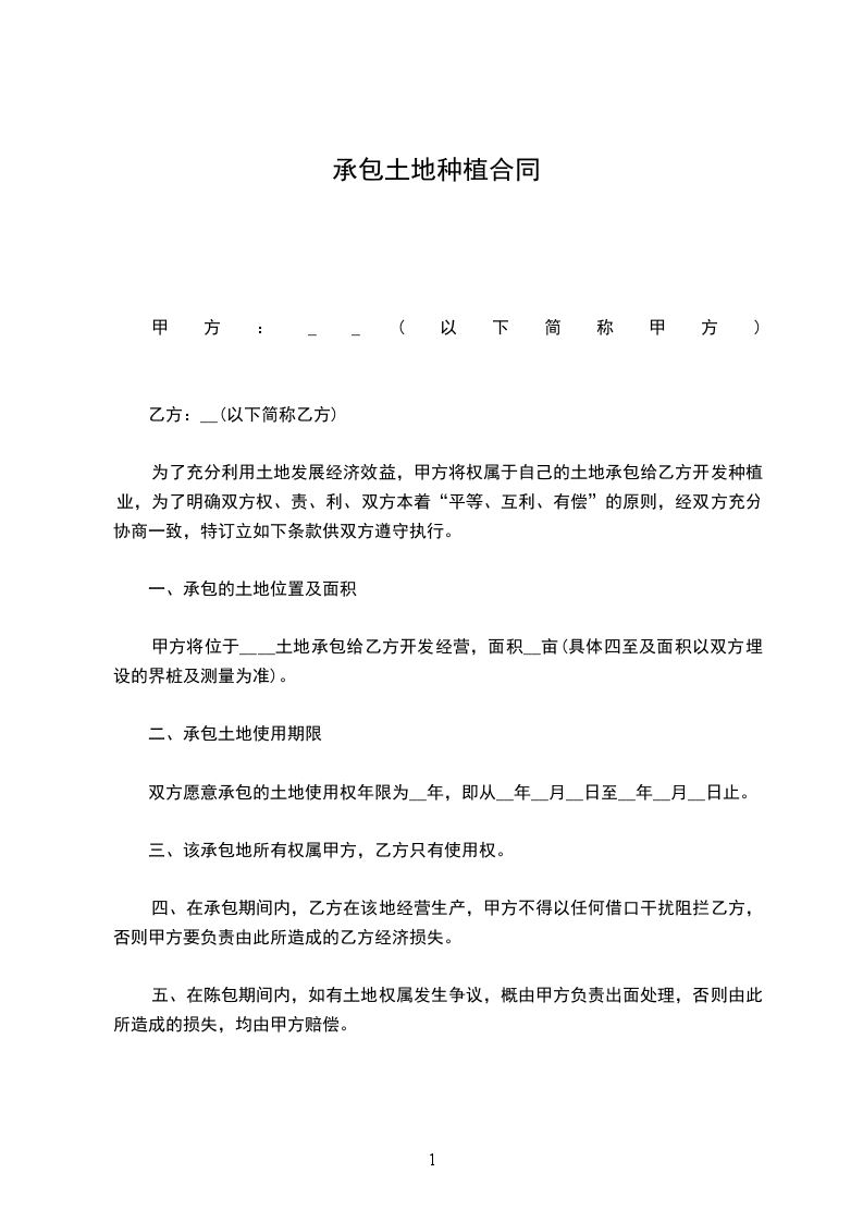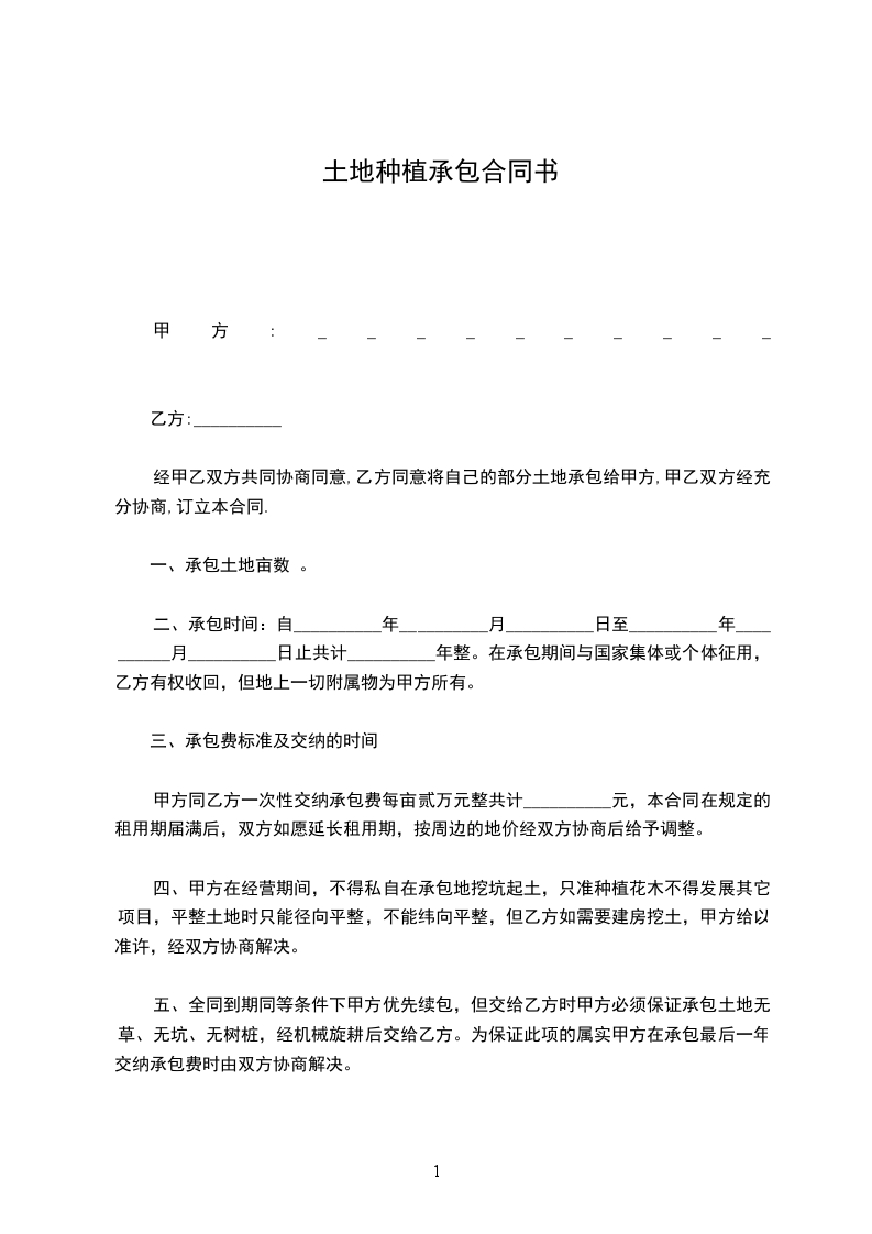 1.承包年限为__________年。自__________年__________月__________日起至__________年__________月__________日止。