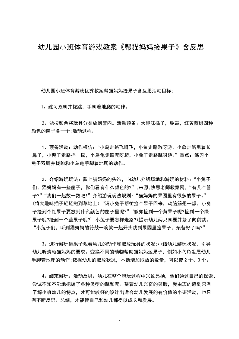 幼儿园小班体育游戏优秀教案 帮猫妈妈捡果子含反思活动目标: