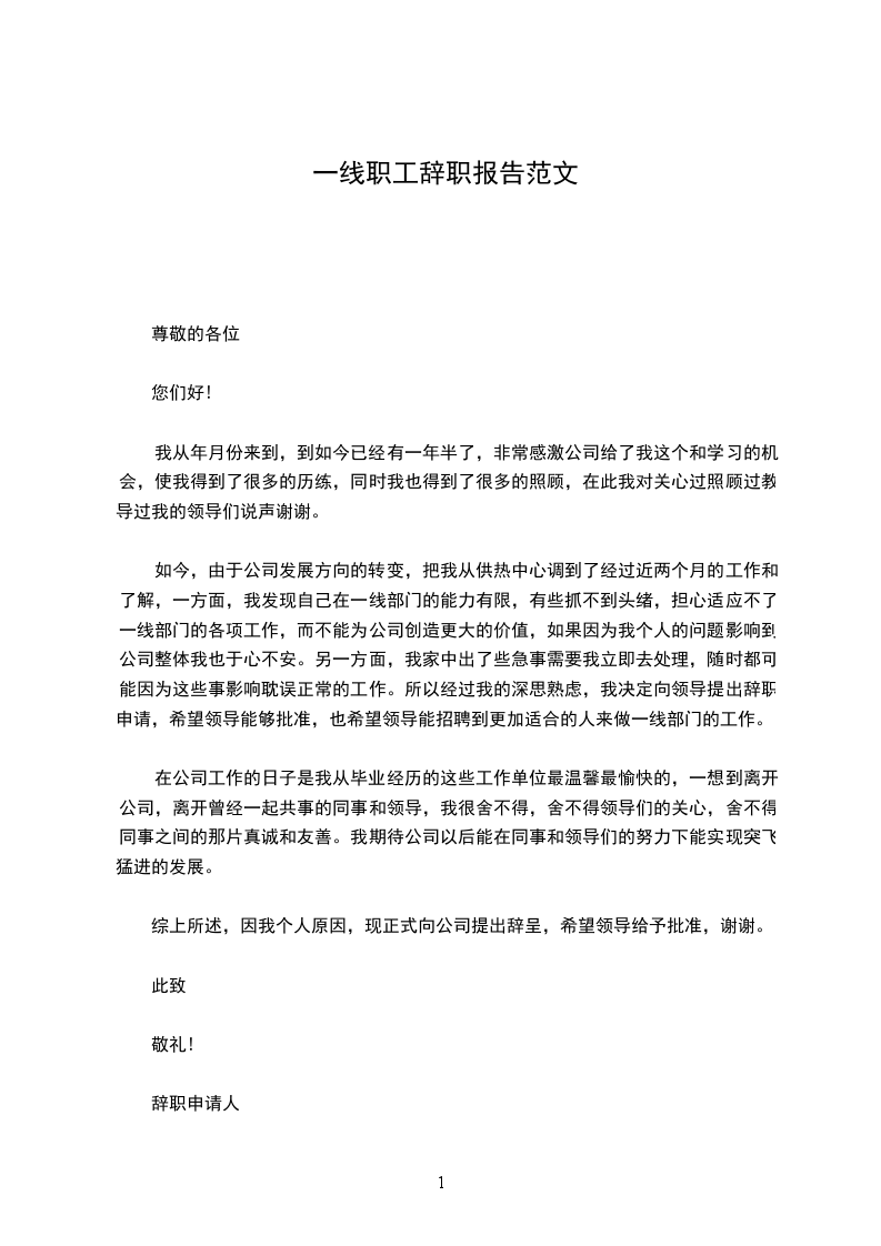辞职人:xxx
