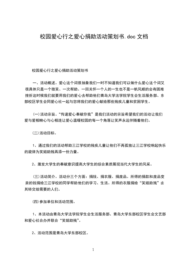 一、活动概述。爱心这个词很抽象我们一时不知道我们可以做什么爱心这个词又很具体只是一个微笑、一次帮助、一回关怀一个人的一生也不是一帆风顺的会有困难、挫折这时候我们就要用我们的爱心去帮助他们青岛大学法学院学生会生活服务部、东部校区学生会同爱心社一起与您将我们的爱心献给那些残疾儿童和贫困学生。