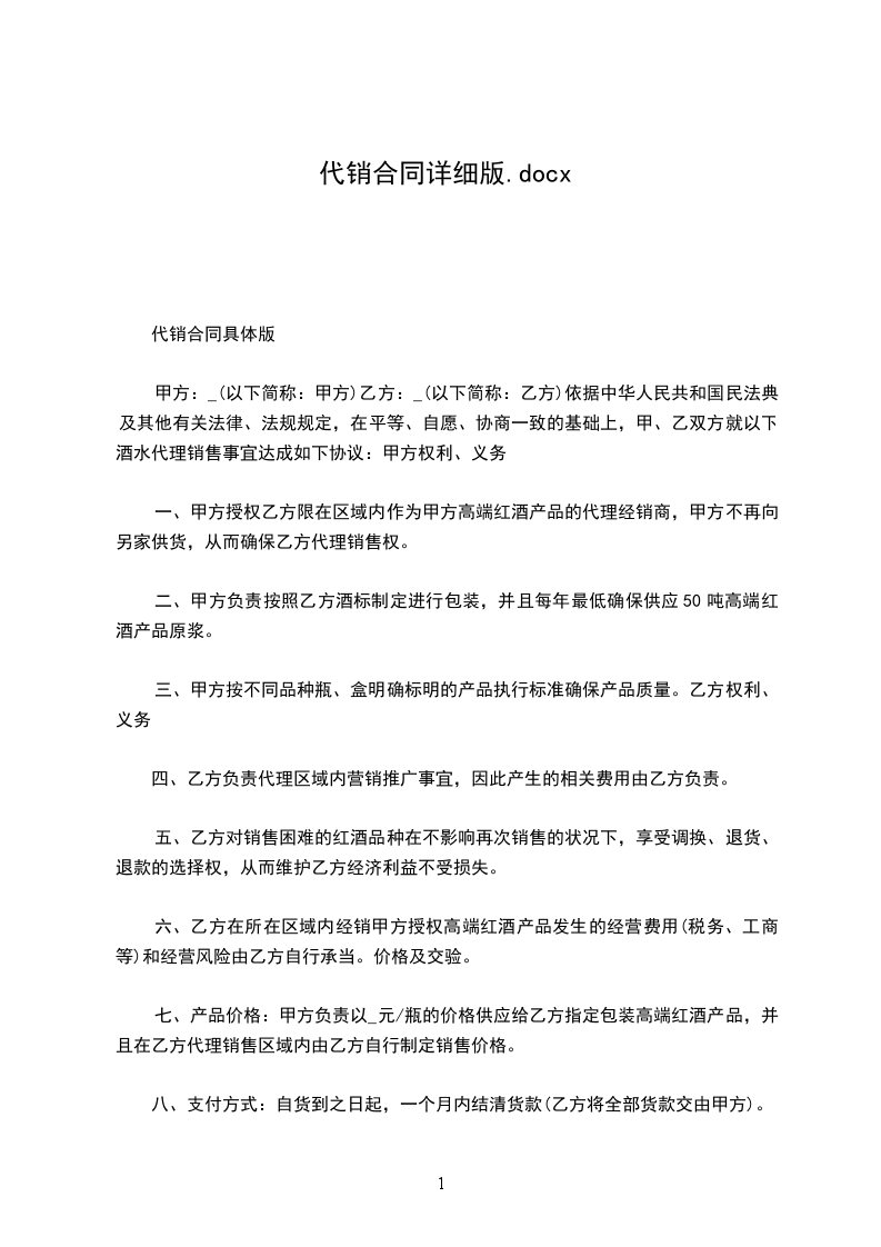 代销合同具体版