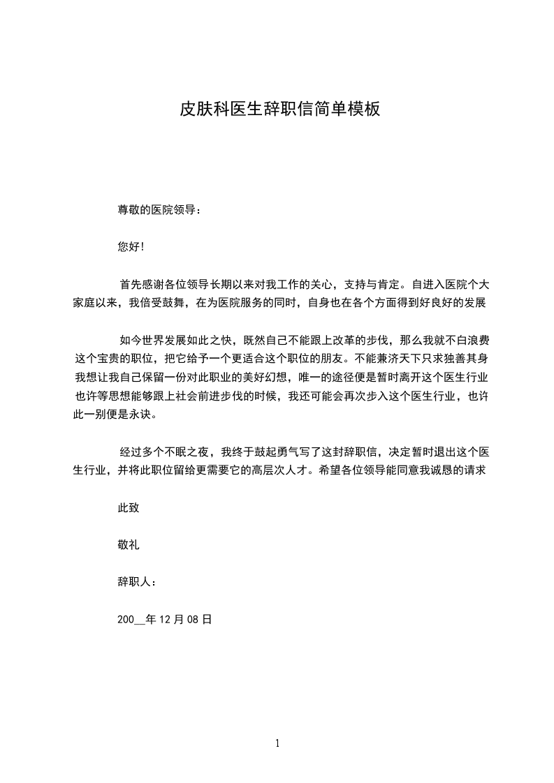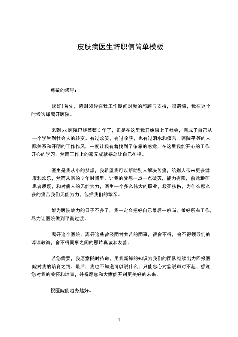 我怀着十分复杂的心情写这封辞职信,自从我参加医院工作以来,有你们的关心、指导和信任,让我的医疗工作能力有了很大的提升,在此再次表示感谢!