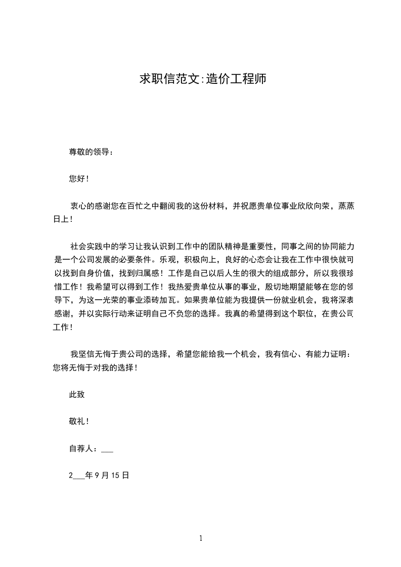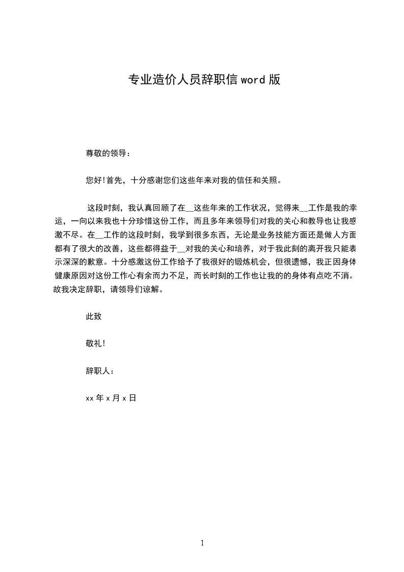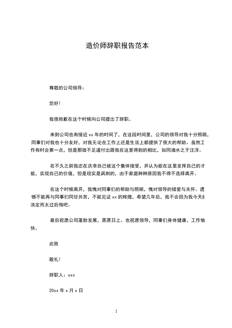造价员辞职信word版