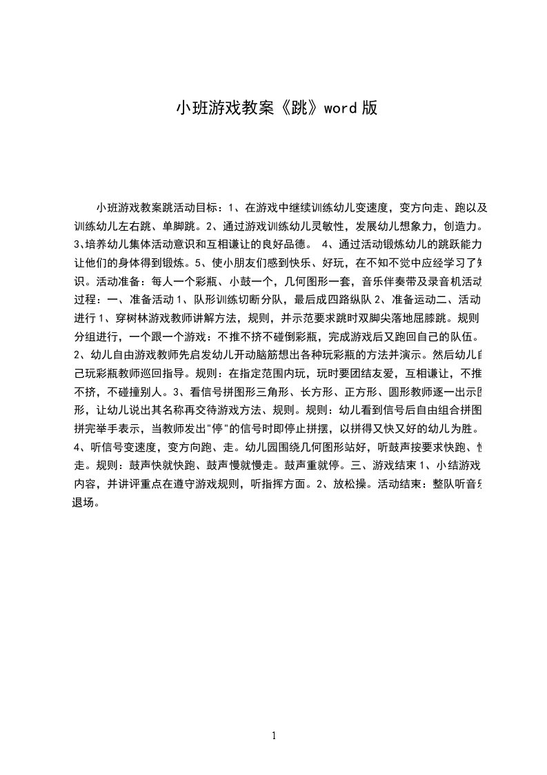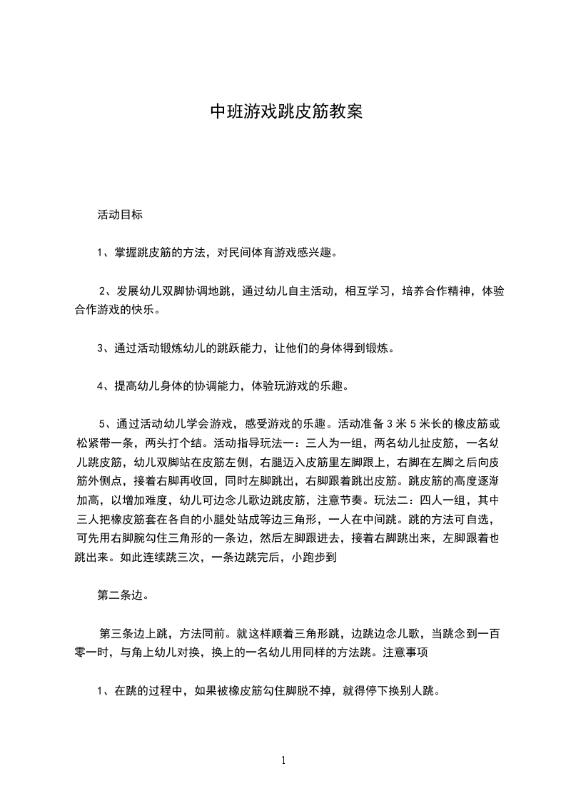 1、掌握跳皮筋的方法,对民间体育游戏感兴趣。