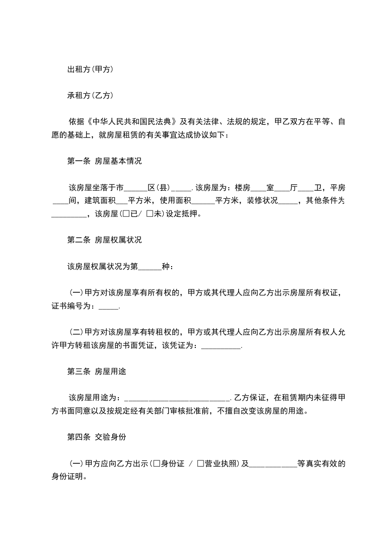 第五条租金的计算和支付