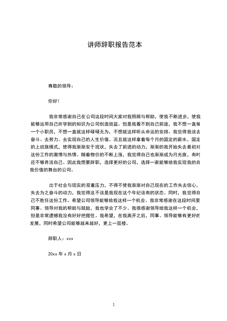 辞职人:xxx