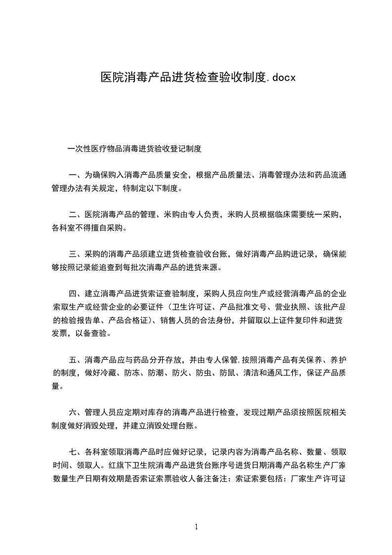 二、医院消毒产品的管理、米购由专人负责,米购人员根据临床需要统一采购,各科室不得擅自采购。