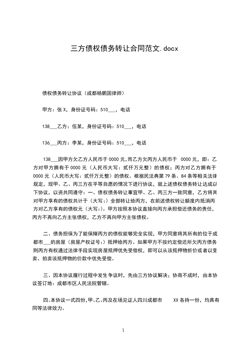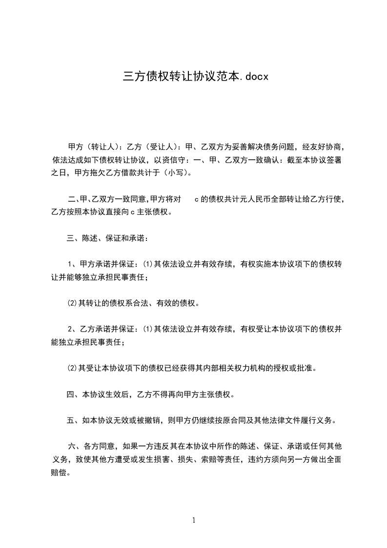 二、现甲方将以上债权转让给乙方,乙方同意受让。协议生效后,丙方直接向乙方偿还债务。
