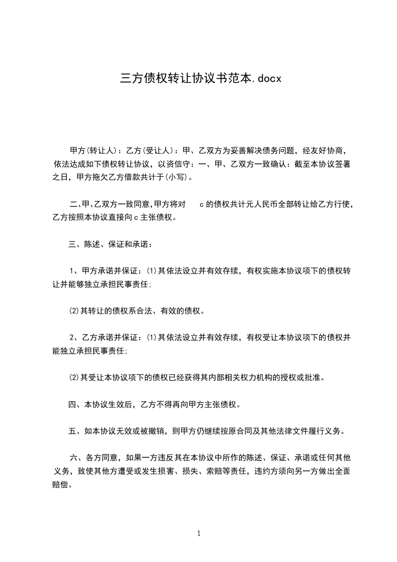 3、本协议自三方签字盖章后生效,共一式叁份,甲乙丙各执一份,各份具有同等法律效力。甲方(公章):乙方(公章):丙方(公章):地址:地址:地址:授权代表:授权代表:授权代表:日期:日期:日期: