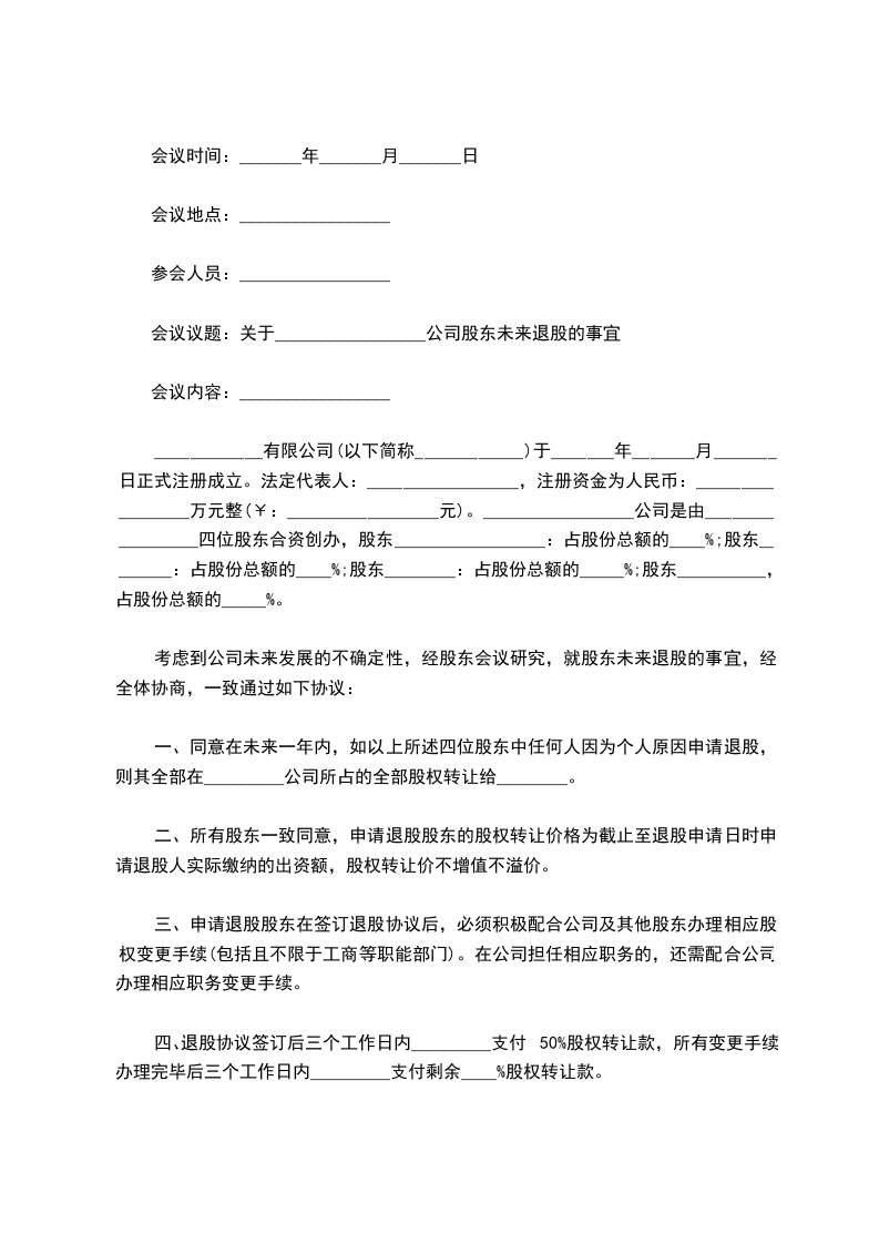 会议议题:关于_________________公司股东未来退股的事宜